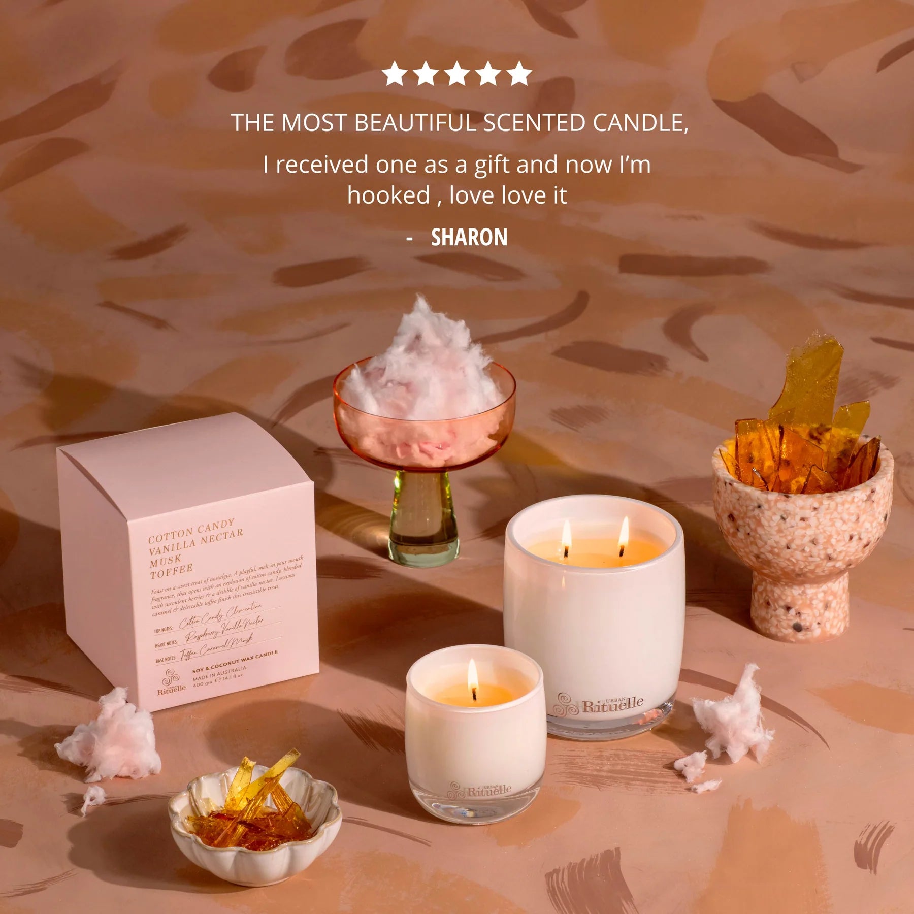Indulge your senses in a cloud of sugary bliss with Cotton Candy, Vanilla Nectar, Musk & Toffee. This 100ml fragrance mist by Urban Rituelle is a playful, feel-good scent that blends fluffy cotton candy, creamy vanilla, soft musk and rich toffee — like your favourite dessert in mist form.